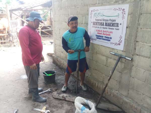 Koperasi Sentosa Makmur (KSM) melalui Kepala Desa memberikan bantuan berupa pengeboran ditambah pompa air sekaligus pekerjaan finishingnya.