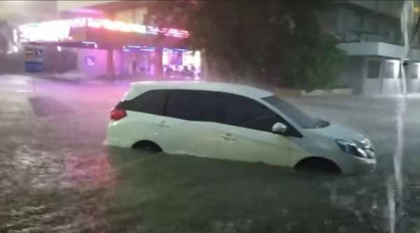 Banjir di jalan tersebut berketinggian beragam. Mulai dari 30 sentimeter hingga 50 sentimeter. Akibatnya sejumlah kendaraan roda dua pun mogok. ( yuli )