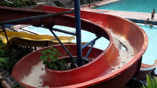 “biasanya pengunjung yang datang full mas ( penuh) kini berkurang sekali, karena kolam renang nya gak di rawat sampai kotor di bagian utara apalagi tempat bermain anak anak tak di rawat jadi terlihat semakin angker” ungkapnya.