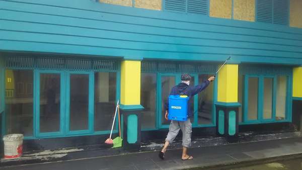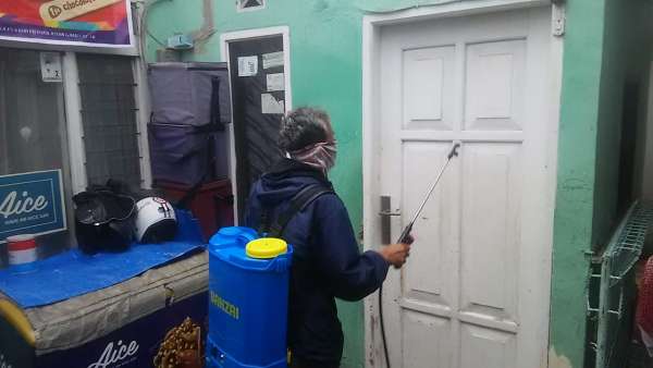 Guna mencegah penyebaran covid-19, di Kota Cimahi, khususnya lingkungan RW 02 Kelurahan Cibabat Kecamatan Cimahi Utara, yang bependuduk lebih dari 1000 jiwa ini bergotong royong melakukan penyemprotan disinfektan bantuan dari H. Asep Rukmasyah.