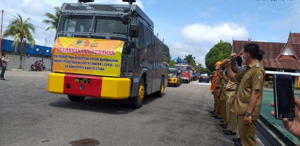 Barito Utara.Gempurnews.com-Pemerintah Daerah Kabupaten Barito Utara melaksanakan apel pagi dalam kegiatan penyemprotan cairan Disinfektan Gugus Tugas Percepatan Penanganan Pandemi Covid-19 di Barito Utara,upacara tersebut telah berlangsung dihalaman Kantor Bupati Barito Utrara,Selasa(31/3/20).