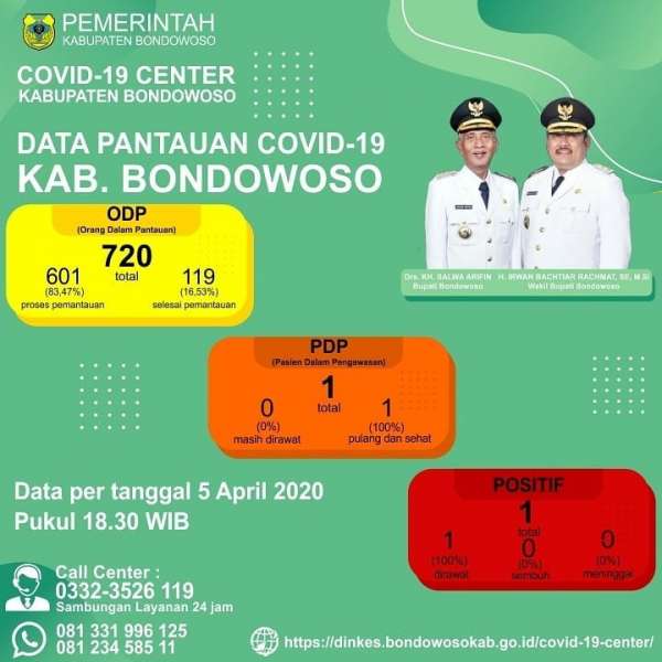 Dinas Kesehatan Kabupaten melakukan press confren (6/4/2020), terkait Covid- I9 atau di kenal dengan virus corona yang bagaikan horor telah sampai di Kabupaten Bondowoso, yang pertama masuk zona hijau sekarang sudah menjadi zona merah karena ada satu warga bondowoso yang positif terjangkit virus corona.