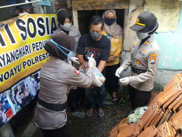Dalam bakti sosial AKP Rohmawati Lailah, SH turun langsung ke masyarakat bersama anggotanya, senin 21 april 2020.