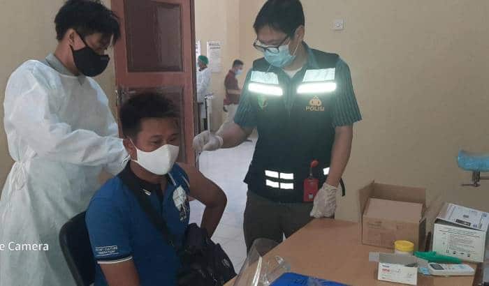 Sumina (87) juga warga desa Jimbaran wetan pada saat duduk dikursi tidak memakai masker langsung diberi masker dan dipakaikan, tidak hanya warga desa saja pada saat pemotor yang lewat desa dilihat tidak pakai masker diberhentikan dan diberi masker oleh AKP Lela