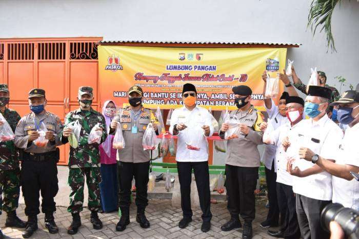 Kombespol Sugeng Ingat Rikolo Direktur Sabhara Polda Jatim di dampingi Kapolres kota AKBP Dony Alexander SIK, MH, dan Bupati Pasuruan H M Irsyad yusuf S E MMA, menghadiri kampung tangguh di perum tartila desa Sumberdawesari, Kecamatan Grati(03/06/2020), serta untuk melounching serta pemotongan pita yang dilakukan oleh Bupati Pasuruan, pengecekan ketahanan pangan, budi daya lele, lumbung pangan juga dapur umum dan ruang Karantina.