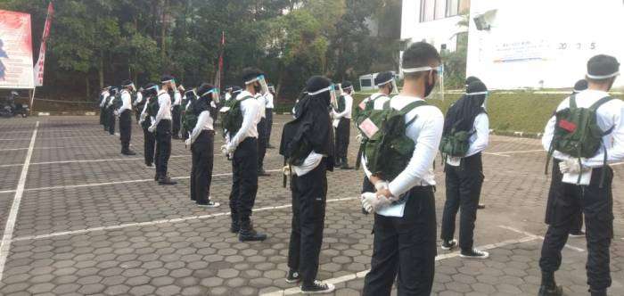 Didalam Latihannya para Siswa harus mengikuti prosedur kesehatan Covid 19, dengan diberikannya alat pelindung wajah Face Shield. Tentunya ini diberikan guna mencegah penularan wabah virus corana yang mematikan, Ujar Erlangga yang merupakan siswa Pusdikpal Kota Cimahi.