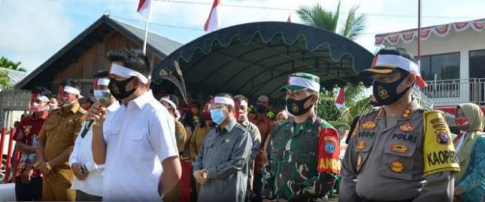 BARITO UTARA –Bupati Barito Utara,H. Nadalsyah berserta Wakilnya Sugianto Panala Putra,SH dan Sekretaris Daerah,Ir.H.Jainal Abidin, M.AP beserta unsur FKPD menyambut kedatangan Tim Ekspedisi Merah Putih (EMP) Polda Kalimantan Tengah dengan Danrem 102 Panjupanjung di Desa Hajak Kecamatan Teweh Baru(15 /8/20).