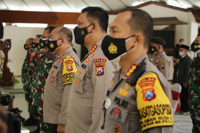 BOJONEGORO – Wakil Gubernur Jawa Timur, Emil Elestianto Dardak, dan Pangdam V Brawijaya, Mayjend TNI Suharyanto, bersama Kapolda Jawa Timur, Irjen Pol Nico Afinta, Selasa (2/3/2021) membuka TNI Manunggal Membangun Desa (TMMD) ke 110, Tahun Anggaran 2021, di pendopo Malowopati, Kabupaten Bojonegoro.