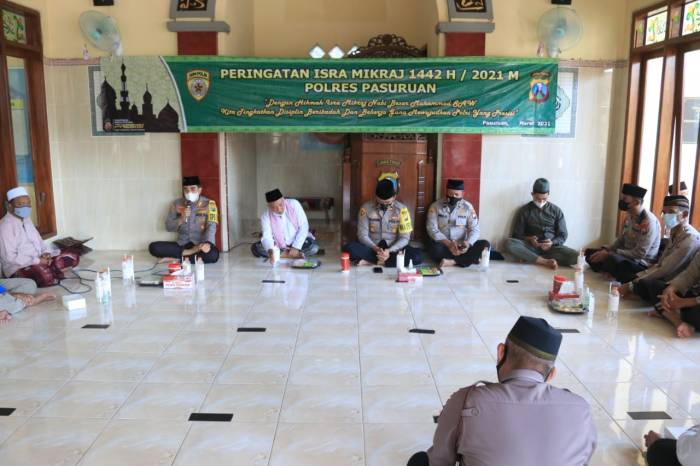 Sementara itu Kapolres Pasuruan AKBP Rofiq menyampaikan dalam memperingati Isra Miraj Nabi Besar Muhammad kali ini dengan mengambil tema Dengan Hikmah Isra Miraj Nabi Muhammad SAW kita tingkatkan disiplin beribadah dan bekerja guna mewujudkan Polri yang PRESISI