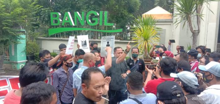 Aksi ini dilatarbelakangi solidaritas dan dilakukan di Alun-Alun Bangil, Selasa (30/03/2021) oleh sejumlah jurnalis dan LSM se-Pasuruan Raya.