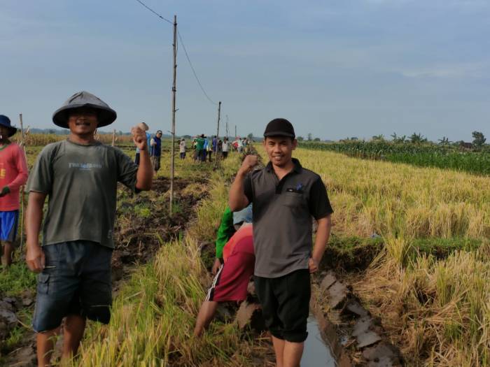 KEDIRI — Setelah sukses memasang lampu penerangan jalan desa, Ahmadi Kepala desa Sukoharjo kecamatan Plemahan Kabupaten Kediri, bersama warganya membuat jalan baru untuk memudahkan masyarakat dari segi transportasi, disisi lain sawah masyarakat akan naik harga jualnya.