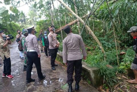 Forkopimda Jawa Timur Gubernur Jatim Khofifah Indar Parawansa, Pangdam V Brawijaya Mayjen TNI Suharyanto, Kapolda Jawa Timur Irjen Pol Nico Afinta, didampingi Pejabat Utama (PJU) Polda Jatim dan Kabid Humas Polda Jatim Kombes Pol Gatot Repli Handoko, Sabtu 17 April 2021 sore, meninjau serta memberikan bantuan sosial kepada warga korban bencana alam.