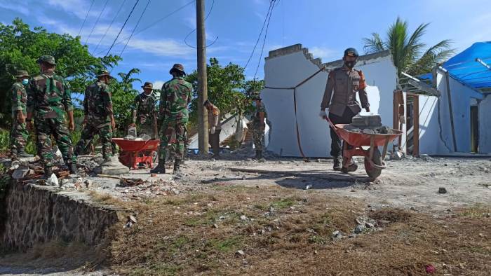 Guna membantu masyarakat, Pemerintah, TNI dan Polri, membantu secara bersama-sama dan gotong-royong untuk membersihkan puing-puing bekas reruntuhan material rumah.