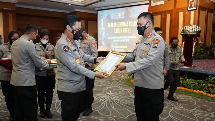 Penghargaan tersebut di berikan dalam kegiatan Rapat Kerja Teknis (Rakernis) Humas Polri 2021, yang diikuti Kabid Humas seluruh Indonesia, selama 3 hari, mulai 3-5 Juni 2021 di salah satu Hotel kawasan Kuta Bali.