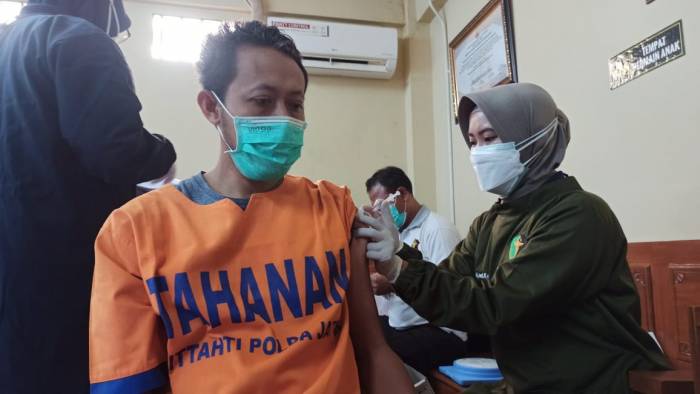“Hari ini secara serentak melaksanakan vaksinasi untuk mencegah penyebaran Covid-19 didalam tahanan,” tambahnya.