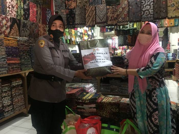 Kali ini, giliran Polwan Polres Bangkalan yang terjun langsung menyalurkan 250 paket sembako kepada pelaku Usaha Mikro Kecil dan Menengah (UMKM) Batik yang terdampak covid-19. Laju ekonomi yang lesu menjadi alasan dibalik pemberian bantuan sembako ini. Pemberian Sembako ini pun dipimpin langsung oleh Wakapolres Bangkalan Kompol Andjar Setijaningrum, S.E. di halaman Mapolres Jumat pagi (20/08/2021). Yang menarik, penyaluran 250 paket sembako dari para srikandi di bumi dzikir dan sholawat ini pun digelar bersamaan dengan peringatan jelang puncak ‘Hari Kesatuan Gerak Bhayangkari’ (HKGB) ke-69.