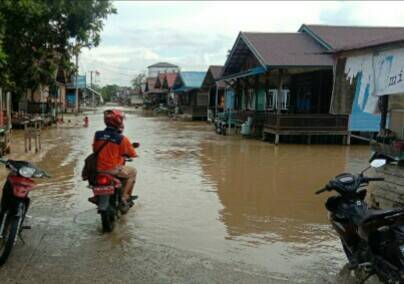 KALTENG – Banjir sempat merendam sembilan desa di Kecamatan Banama Tinggang, Kabupaten Pulang Pisau, Kalimantan Tengah, pada Senin (23/8/2021). Banjir terjadi karena curah hujan yang tinggi dengan durasi yang cukup lama.
