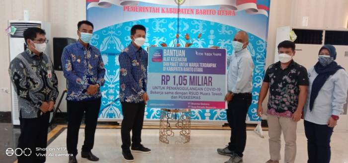Ditengah terjadinya lonjakan kasus Covid-19 yang saat ini sedang terjadi di Ibukota Muara Teweh.Ketersediaan bahan pokok dan alat kesehatan sangatlah krusial,dalam hal ini harapan kami partisipasi dari Managemaen Perusahaan ini,semoga dapat bermanfaat dalam membantu proses percepatan penanganan Covid-19 serta pemulihan ekonomi masyarakat,”ungkapnya. (SS).