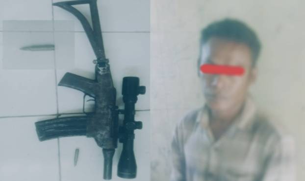 “Dari hasil penangkapan tersebut berhasil diamankan BB 1 Unit Senjata Api Rakitan dan 1 butir Peluru aktif dengan Kaliber 5,56”, Urai Kapolres. (DHW/robhin)