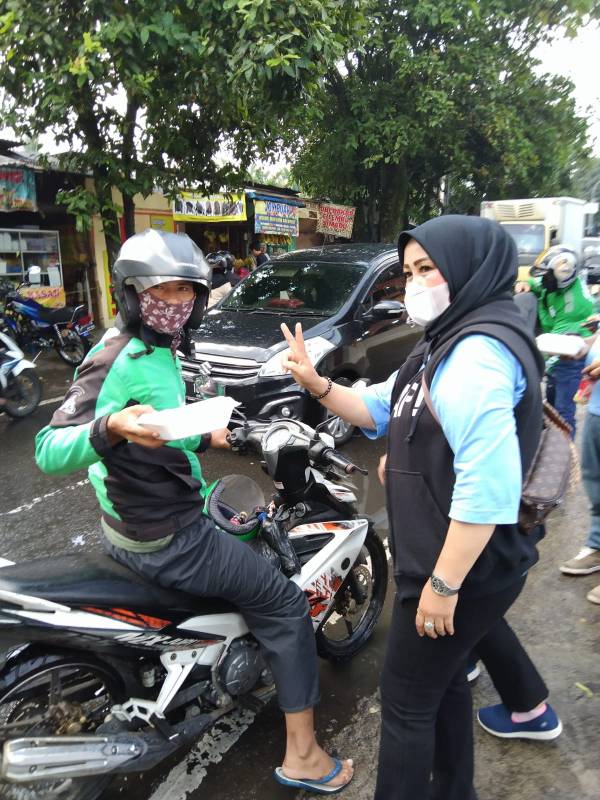 CIMAHI — Ketua DPC Bintang Muda Indonesia, sekaligus anggota dewan dari Partai Demokrat, Yulianawati, Kamis,30 September 2021 melaksanakan kegiatan berbagi makanan untuk pengemudi ojek online.