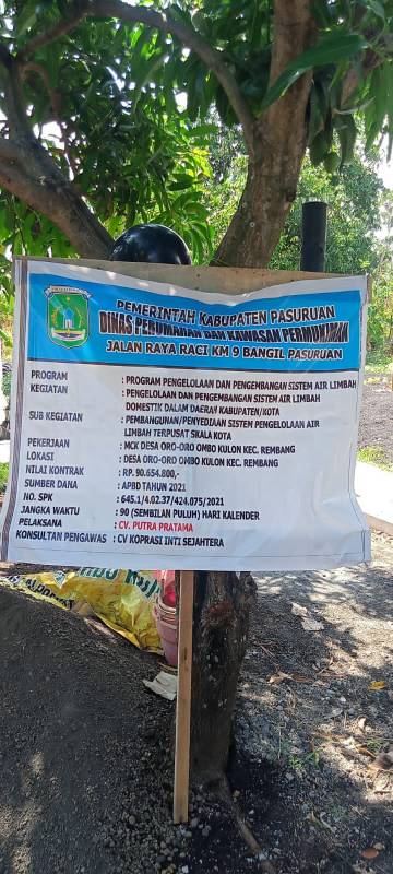 PASURUAN – Kualitas proyek program pengelolahan dan pengembangan air limbah yang dikerjakan oleh CV Putra Pratama dengan pengawasan dari CV Koprasi Inti Sejahtera diduga tidak sesuai spesifikasi.