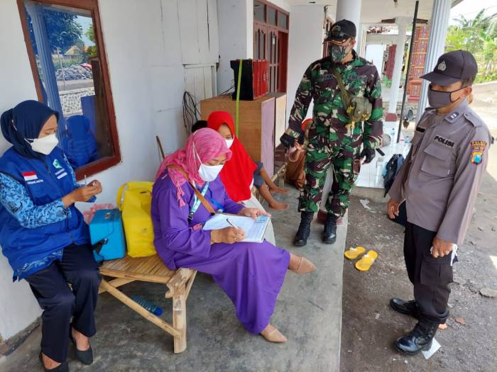 Dalam melaksanakan pendampingan anggota Koramil atas nama Sertu Saiful Anwar bersama – sama dengan Tim Satgas ikut juga aktif memberikan Edukasi kepada masyarakat yang melaksanakan vaksinasi diantaranya memberikan himbauan kepada masyarakat agar selalu mematuhi protokol kesehatan.