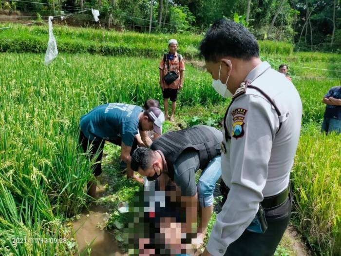 MALANG – Seorang petani menemukan mayat berjenis kelamin laki-laki, di sebuah pematang sawah yang berada di Desa Klampok Kecamatan Singosari Kabupaten Malang. Sabtu (13/11/2021) pagi.