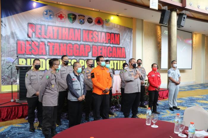 KOTA BATU – Kepala Bidang Dokter Kesehatan (Kabid Dokkes) Polda Jatim KBP Erwin Zainul Hakim melaksanakan kegiatan Pelatihan Kesiapan Desa Tanggap Bencana di Hotel Amarta Hills, Kota Batu, Selasa (16/11/2021).