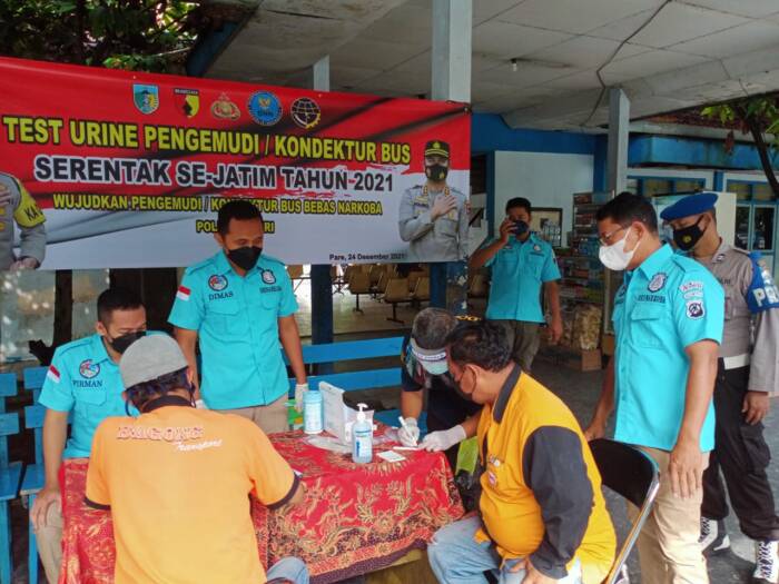 Dalam kegiatan Sidak sopir angkutan umum ini hadir Kepala BNN Kabupaten Kediri AKBP Lilik Dewi Indrawati dan Kasat Narkoba Polres Kediri AKP Ridwan Sahara.