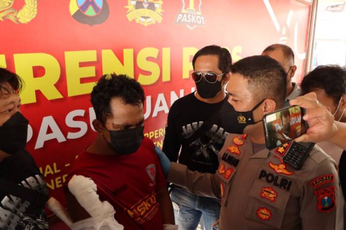 Dijelaskan oleh Kapolres Pasuruan Kota, Pagi hari ini jajaran satreskrim Polres Pasuruan Kota dibantu oleh jajaran Jatanras Polda Jawa Timur telah berhasil mengungkap DPO pelaku curas, curat, curanmor, anirat dan kepemilikan Handak undang-undang darurat di mana pelaku DPO ini adalah pelaku yang sudah lama kita cari kita kejar Karena melakukan beberapa TKP di wilayah hukum Polres Pasuruan Kota.
