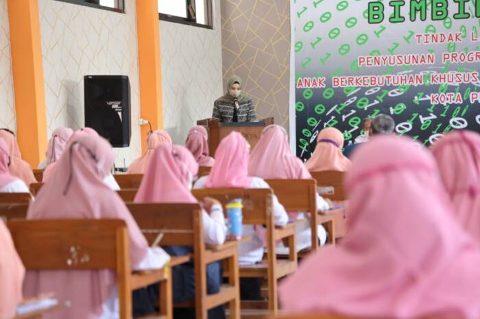 Bunda Pendidikan Anak Usia Dini (PAUD) Aminah Hadi Zainal Abidin membuka Bimbingan Teknis (Bimtek) Tindak Lanjut Hasil Assesment dan Penyusunan Program Pembelajaran Individu (PPI) Anak Berkebutuhan Khusus (ABK) PAUD Kota Probolinggo Tahun 2022, Rabu (23/2) di Aula SMKN I Probolinggo.