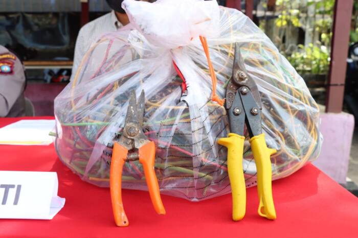 Barang Bukti yang di amankan berupa 1 Buah Gunting Pemotong Seng, 1 Buah Gunting Pemotong Kawat/Besi, 1 Unit Sepeda Motor Yamaha Jupiter, 2 Gulung Kabel Listrik. Atas kejadian tersebut kerugian sebanyak Rp. 20.000.000,-