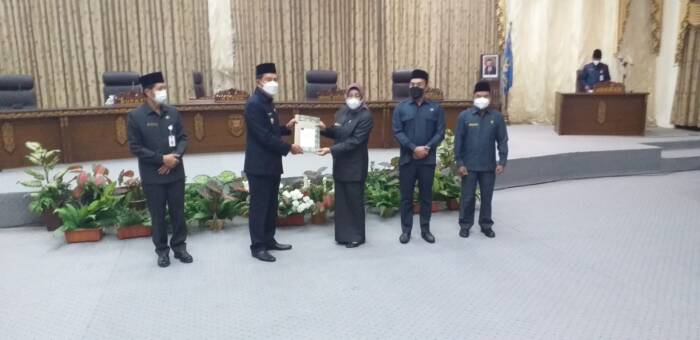 Dari akhir rangkaian Sidang Paripurna I.Penyerahan dokumen Pidato Bupati dan dokumen LKPJ tahun anggaran 2021,oleh Bupti Barito Utara,H.Nadalsyah disampaikan ke Ketua DPRD Barito Utara,diterima oleh,Ir.Hj.Mery Rukaini,M.IP. Dihadapan anggota Dewan dan pemerintah daerah. (SS)