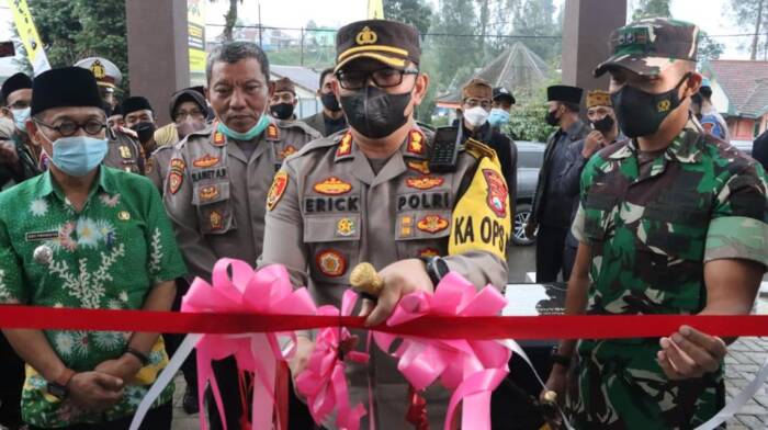 PASURUAN- Kapolres Pasuruan AKBP Erick Frendriz, S.I.K., M.Si. didampingi Wakapolres Pasuruan, Kapolsek Tosari bersama Tiga Pilar dan para Pejabat Utama Polres Pasuruan meresmikan bangunan Polsek Tosari yang baru, Peresmian ini dilaksanakan di Kec.Tosari, Kab.Pasuruan, Kamis (31/03/2022).