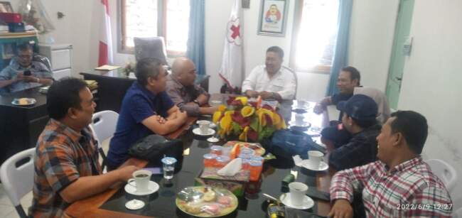 “Kami dari PWI juga siap bersinergi dengan PMI Jember,” kata ketua PWI Perwakilan Jember Sugeng Prayitno saat bertemu dengan ketua PMI Kabupaten Jember H EA Zaenal Marzuki SH MH Kamis, 9 Juni 2022. Sugeng Prayitno saat berkunjung ke maraks PMI Kabupaten jember didampingi sejumlah pengurusnya. Antara lain Purcahyo Juliatmono, Bagus Supriyadi, Yakub Mulyono, Shinto, Moko Sugianto dan Rusdi.