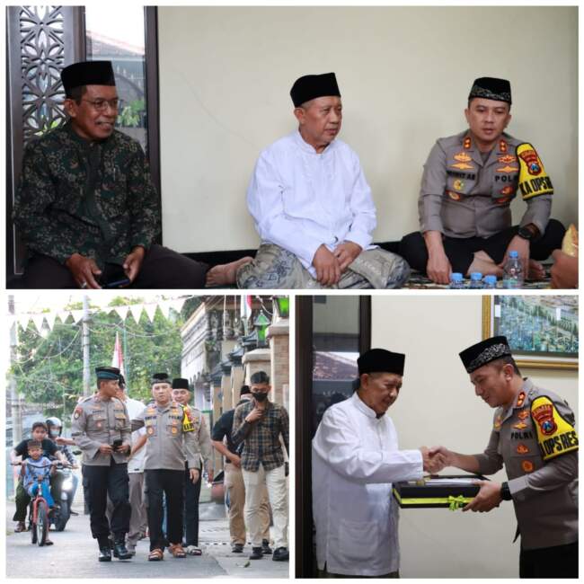 KOTA MOJOKERTO – Dalam rangka mempererat sinergi Polri bersama Tokoh Agama untuk memelihara Kamtibmas yang kondusif, Kapolresta Mojokerto AKBP Wiwit Adisatria, S.H., S.I.K., M.T. Silaturahmi ke Ketua PCNU Kota Mojokerto, Drs KH M Sholeh Hasan.