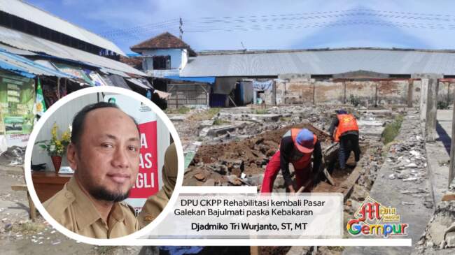 Gempurnews.com, Banyuwangi – Pemerintah Daerah Kabupaten Banyuwangi, melalui Dinas Pekerjaan Umum Cipta Karya, Perumahan dan Pemukiman (DPU CKPP) Merehabilitasi kembali Pasar Galean Bajulmati yang terbakar dipertengahan Januari lalu.
