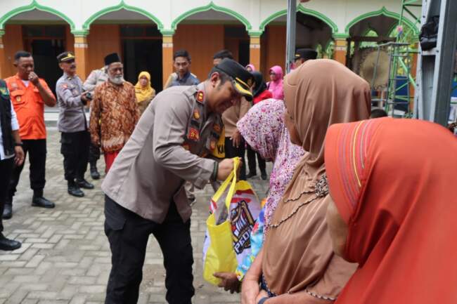 Sebagai bentuk kepedulian Polres Ngawi kepada masyarakat yang tertimpa musibah, dengan turut serta gotong royong membereskan puing-puing rumah serta memberikan bantuan sembako kepada 100 warga yang kurang mampu