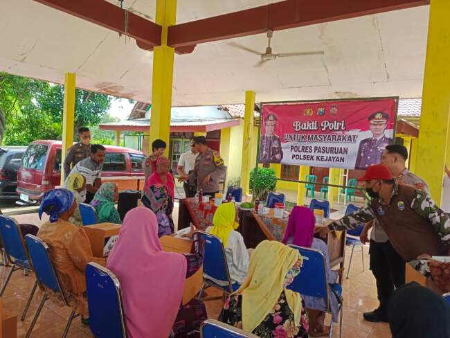 PASURUAN – Masyarakat tidak mampu berupa pembagian bingkisan sembako dan uang tunai dari 5 desa di Kecamatan Kejayan, Kabupaten Pasuruan melalui kegiatan Bakti Polri Polres Pasuruan yang digelar di Balai Desa Randugong.