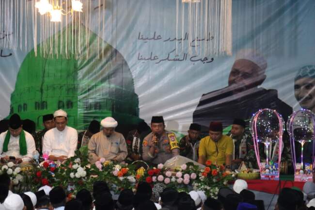 Lumajang – Kapolres Lumajang AKBP Dewa Putu Eka D, S.I.K M.H menghadiri acara Maulid Nabi Muhammad S.A.W di Pondok Pesantren Raudhatul Ma’rifat Lumajang, Kamis (27/10/2022) malam.