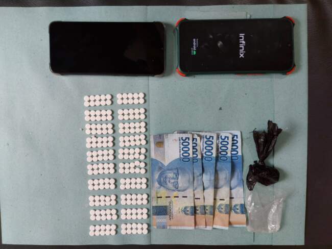 Selain pil dobel L, petugas juga mengamankan 1 sobekan plastik hitam, 1 buah plastik transparan, dua unit ponsel, lima lembar uang tunai dengan pecahan Rp 50 ribu.