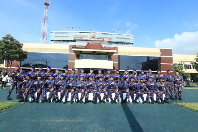 SURABAYA – Upacara peringatan HUT ke-72 tahun 2022 Polisi Air dan Udara (Polairud) yang mengusung tema “Polairud profesional dan efektif mendukung pembangunan ekonomi maritim nasional untuk mewujudkan Indonesia yang tangguh” berlangsung di Lapangan Mapolda Jatim, pada Senin (5/12/2022).
