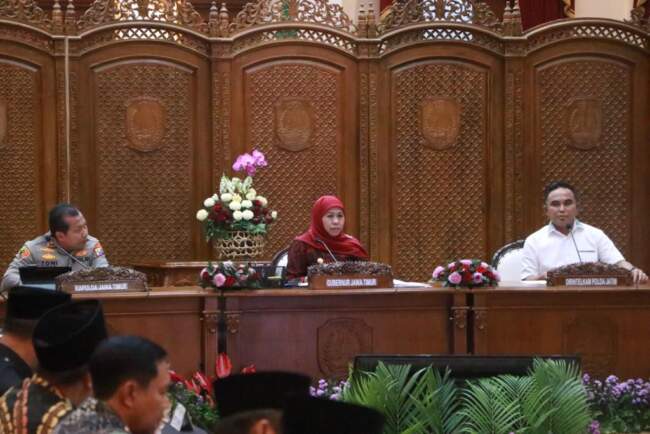 “Bersama-sama mari kita niatkan Rakor ini berbagai upaya memberikan perlindungan terbaik untuk masyarakat Jawa Timur,”pungkas Gubernur Jatim, Khofifah.