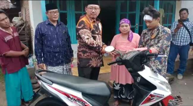Tak hanya memberi sepeda motor jenis matic, Dion, panggilan akrab ketua DPRD itu juga memberikan semangat pada pemuda yang menjadi tulang punggung keluarga itu.