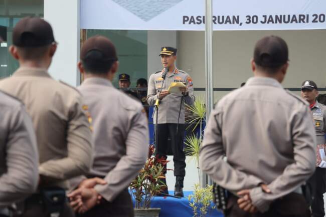 PASURUAN – Kapolres Pasuruan AKBP Bayu Pratama Gubunagi, S.H., S.I.K., M.Si. memimpin upacara Hari Ulang Tahun (HUT) Satuan Pengamanan (Satpam) ke-42 Tahun 2023, dengan mengusung tema “Sinergisitas Satpam dan Polri, Peduli untuk Sesama”. Upacara tersebut digelar di halaman PT. Pier, Kecamatan Rembang, Kabupaten Pasuruan, Senin (30/01/2023).
