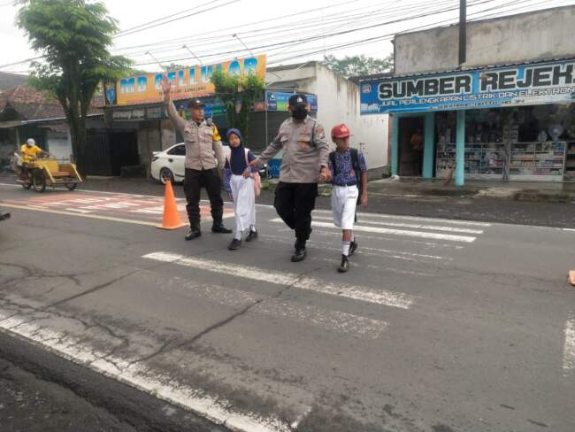 “Alhamdulillah hadirnya petugas Polsek Pasirian sangat dirasakan membantu anak-anak sekolah yang akan menyebrang jalan,” ucapnya.