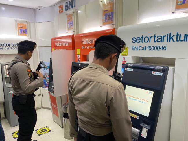 Dalam kegiatan patroli, personil memantau situasi dan kondisi wilayah di perbankan.