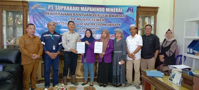 BARITO UTARA- PT. Suprabari Mapanindo Mineral (PT. SMM) pedulian terhadap dunia pendidikan bagi masyarakat desa disekitar tambang batu baranya dengan menyalurkan bantuan berupa beasiswa kepada dua orang mahasiswi yang kuliah di Sekolah Tinggi Ilmu Ekonomi (STIE) Muara Teweh, Senin (17/4/2023).