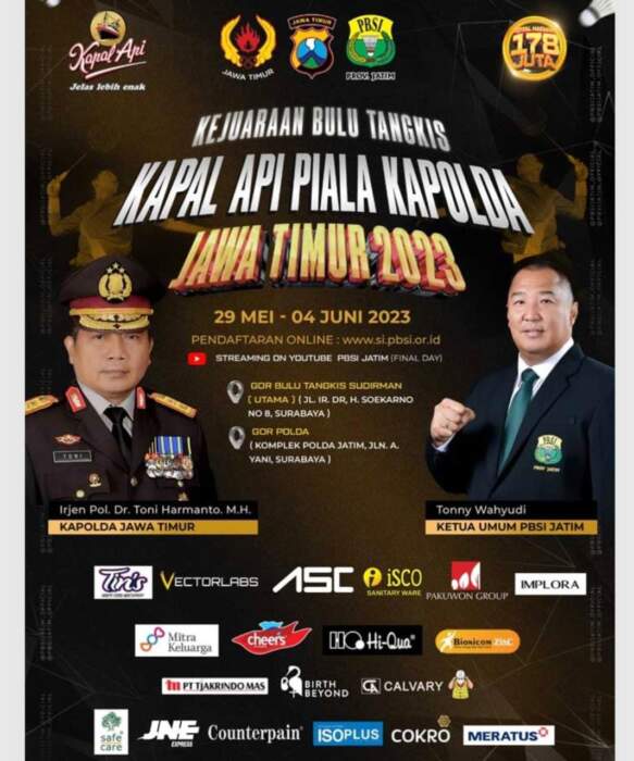 “Terima kasih kepada Bapak Kapolda Jatim Irjen Pol Toni Harmanto yang selalu memberikan dukungan penuh kepada PBSI Jatim dalam mengembangkan karir atlet bulu tangkis di Jawa Timur,” ungkap Yudi.