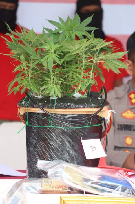 Sehingga jumlah barang bukti keseluruhan Narkotika jenis daun ganja dengan berat 70,54 Gram daun Ganja Kering, dan Narkotika jenis sabu Serbuk kristal dengan berat 23.477,44 Gram.
